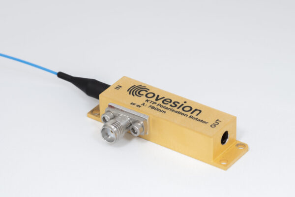 Our waveguide-based Pockels cell provides high-speed polarization switching with low drive voltage. The device leverages the birefringence of our KTP waveguide by guiding orthogonal polarizations along the crystal axes. When an RF signal is applied, a controlled relative phase delay is introduced between these modes, enabling rapid switching.